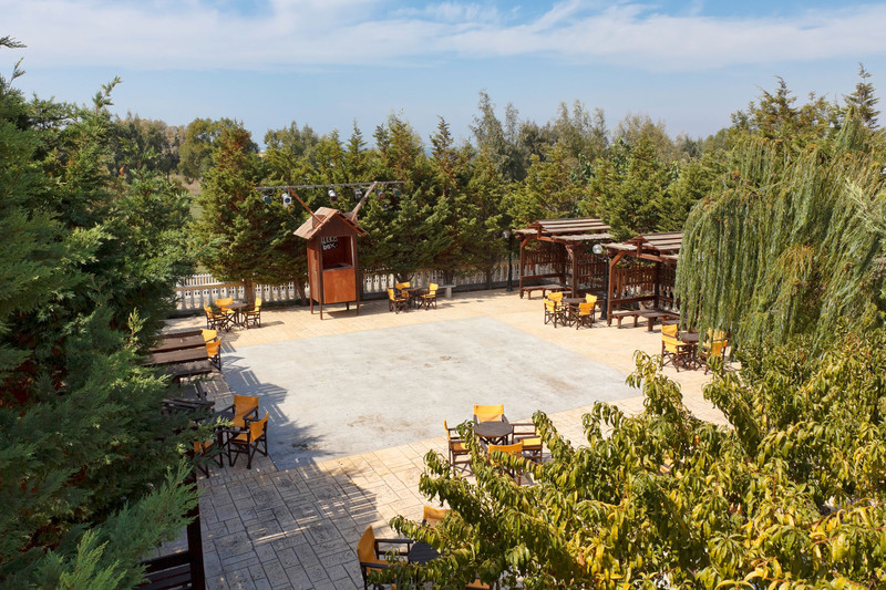 All pension meals are served in the main restaurant and terrace, in buffet-style, offering a large variety of international and local cuisine. Meals are accompanied with house wine, draft beer, soft drinks and water. Theme nights (such as Greek Night and other special nights) are organized in the main restaurant. In the afternoon, filter coffee, tea, cake and cookies are served in the bar.