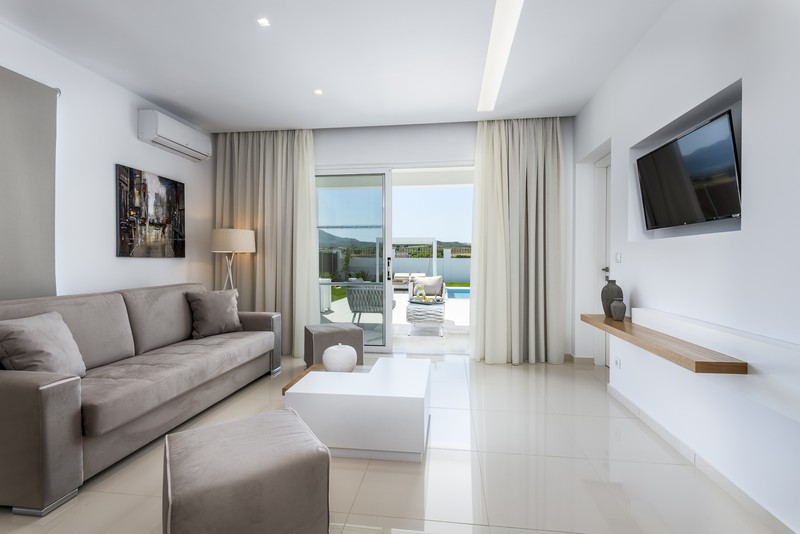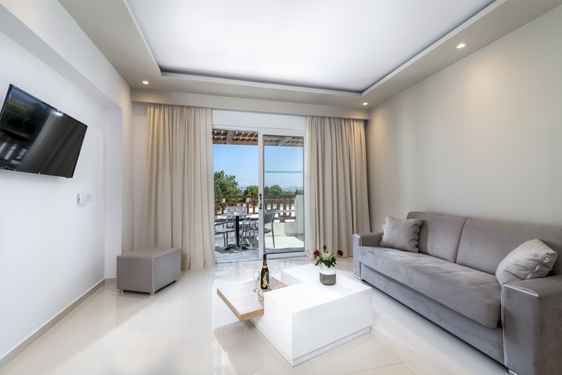 The Suite (47m²) has a separate bedroom and a comfortable sitting area. It can accommodate up to 3 guests in 1 double or 2 single beds and one double sofa in the living room.