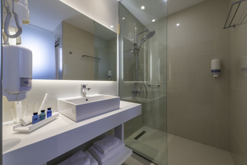 Modern bathrooms, all with shower and hairdryer.