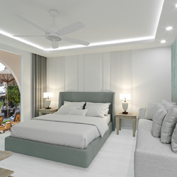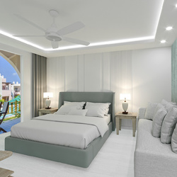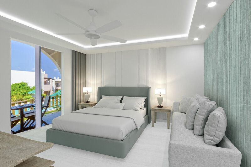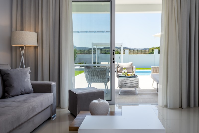 From the adjoining balconies or ground floor verandas, guests can relax while their gaze takes in the serene greens of the gardens and blues of the swimming pools.
