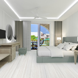The 14 m² furnished balconies overlooking the private pool and the hotel gardens will create a memorable vacation for you and your family.