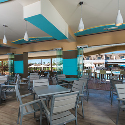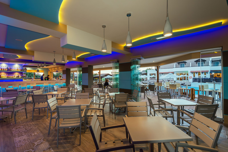 The hotel bar is located in the same space as the electronic games and billiard table and offers drinks and delicious cocktails for adults and snacks and other taste treats for children. The hotel’s central pool bar serves ice-cold beers and soft drinks, ice creams and snacks for a scrumptious break between swims.